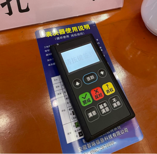 2、電子表決:會議電子表決系統(tǒng)的表決器,具有贊成”、“反對”、“棄權(quán)按鍵鮮明,操作簡易,待機(jī)持久,會前反復(fù)測試,會中現(xiàn)場支持特別適合于市、縣(區(qū)人民代表大會涉及表決事項(xiàng)時使用,數(shù)據(jù)準(zhǔn)確,能和大會主持詞、顯示屏同步協(xié)調(diào)使用,頗受人代會的歡迎和好評。